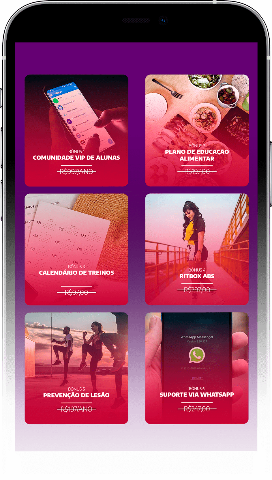 Acesso 100% online a todas as videoaulas criadas especialmente para queimar calorias e gorduras localizadas em no máximo 20 minutos.